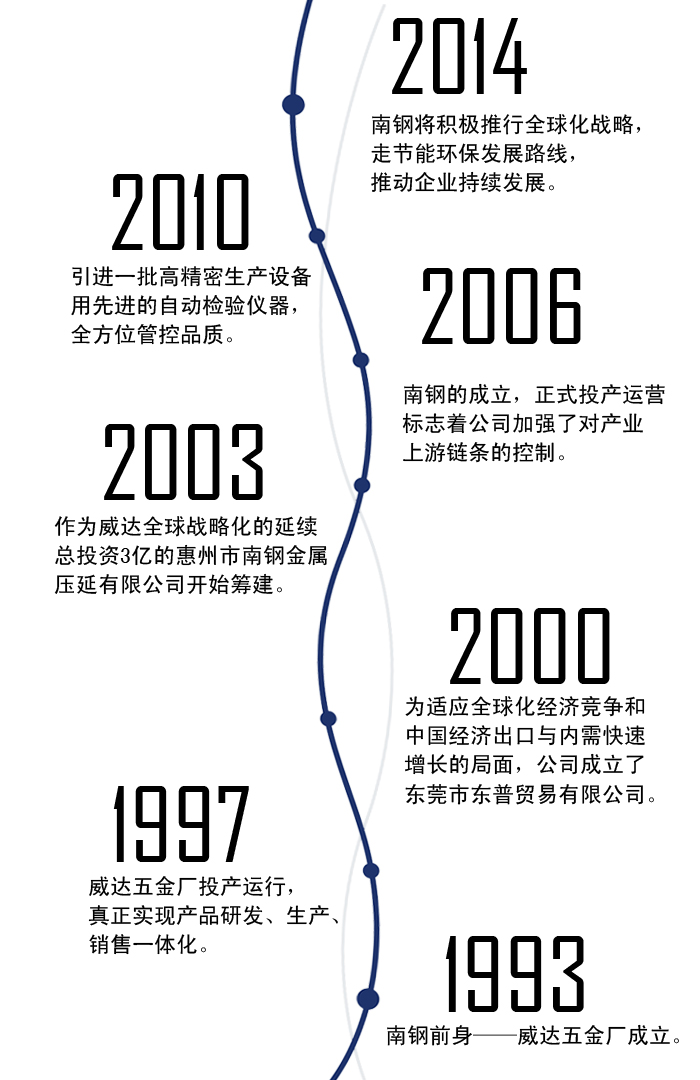 2003年,作為威達(dá)全球戰(zhàn)略化的延續(xù),總投資3億的惠州市南鋼金屬壓延有限公司開(kāi)始籌建。