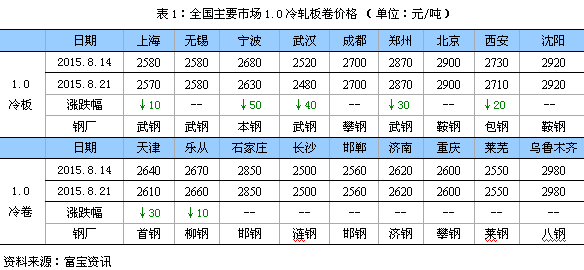 本周冷軋市場穩(wěn)中有弱。具體來看,華東市場大體持穩(wěn),商家根據(jù)自身庫存適度調整,1.0mm資源卷板在2550-2600元左右,另外一些新貨也陸續(xù)到達,但出貨較前期回落,后市信心顯不足;華中武鋼市場受日照低位資源影響,武鋼報盤回落在2480元,日照在2350-2400元,;長沙較為平穩(wěn),雖漣鋼下旬政策跌70元,但商家仍以觀望為主;華北天津市場穩(wěn)中趨弱,主要最近唐鋼、首鋼到貨增多,前期規(guī)格短缺的支撐力度轉弱,加之下游需求萎靡且觀望采購,商戶日成交量多在兩百噸,個別甚至創(chuàng)最低日成交量,致使心態(tài)偏空,更加傾向套現(xiàn);華南市場盤穩(wěn)運行,成交偏弱,目前柳鋼價格2650-2670元/噸左右的水平,另外武鋼近期將加大投放量,后市不利因素漸增。